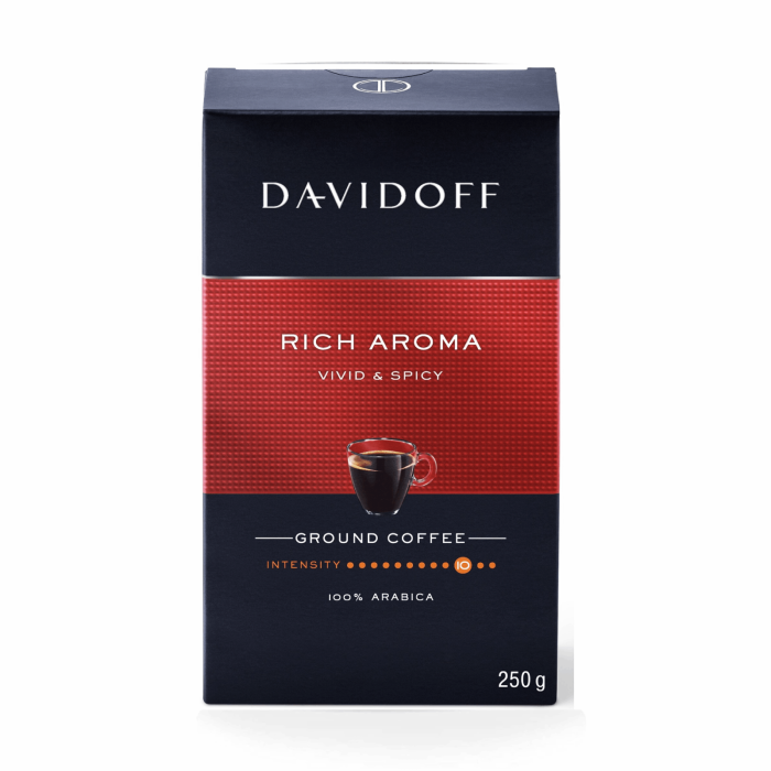 | Pentru a obtine reteta desavarsita si a crea o compozitie unica, cu o savoare intensa si aciditate placuta, sunt special selectionate cele mai bune boabe de cafea din America de Sud si din Africa de Est. Davidoff Rich Aroma este visul oricarui iubitor de cafea. | ![]() |
